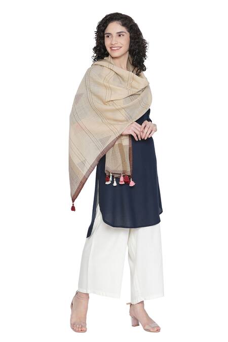 Buy_Shingora_Beige Geometric And Stripe Pattern Stole_at_Aza_Fashions