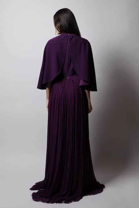 Buy_Swatee Singh_Purple Georgette Round Gown With Cape _Online_at_Aza_Fashions