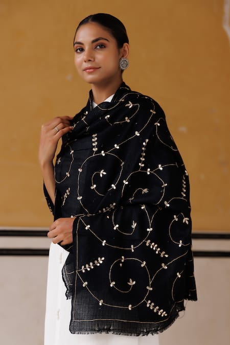 Black Floral Gotapatti Work Shawl