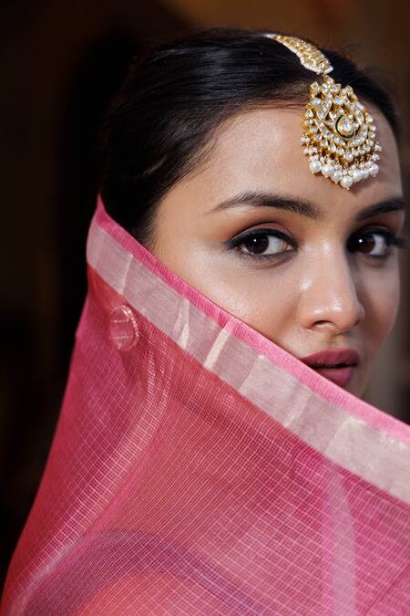 Pink Kota Doria Zari Silk Dual Toned Saree With Unstitched Blouse Piece