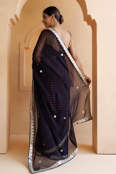 Black Georgette Gota Patti, Leheriya Mothra Saree With Unstitched Blouse Piece