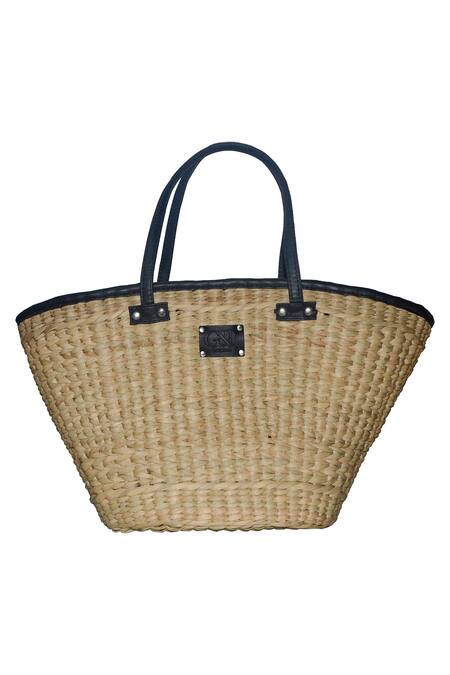 Beige Sequin And Beads Evil Eye Embellished Woven Beach Bag