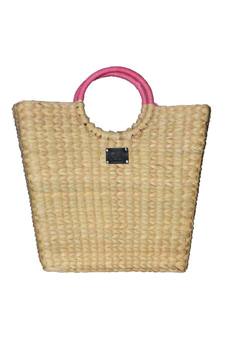 Buy_Ginn And Tonik_Beige Sequin Embellished Evil Eye Woven Beach Bag_Online_at_Aza_Fashions