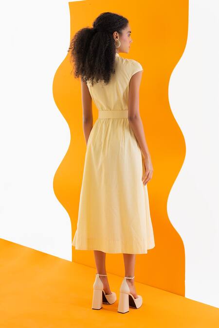 Buy_NOTEBOOK_Yellow Gingham Cutout Shirt Dress_at_Aza_Fashions