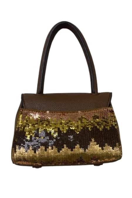 Brown handbag crafted from cotton with bead sequins for embellishment