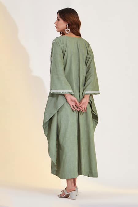 Green Cotton Linen Embroidered Yoke High-low Kurta And Palazzo Set