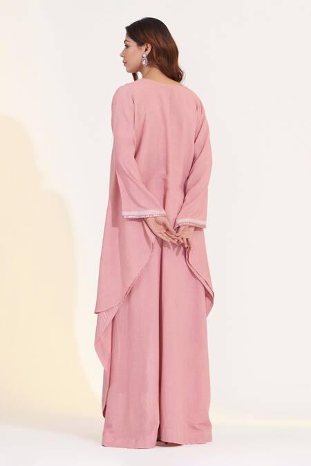 Green Cotton, Linen Embroidery V-neck Yoke Kurta And Palazzo Set