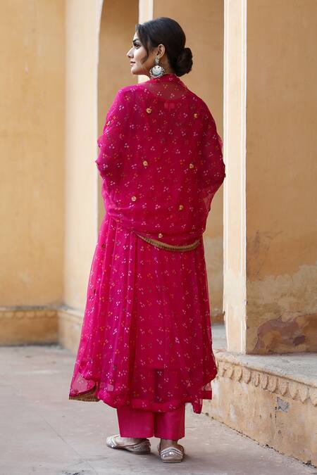 Pink Cotton, Georgette Bandhani Keyhole Gomti Print Anarkali Set