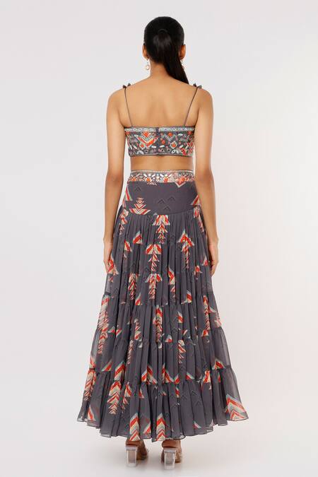 Grey Blouse Crepe, Skirt Georgette Tassel Sweetheart Eve Bustier And Tiered Set