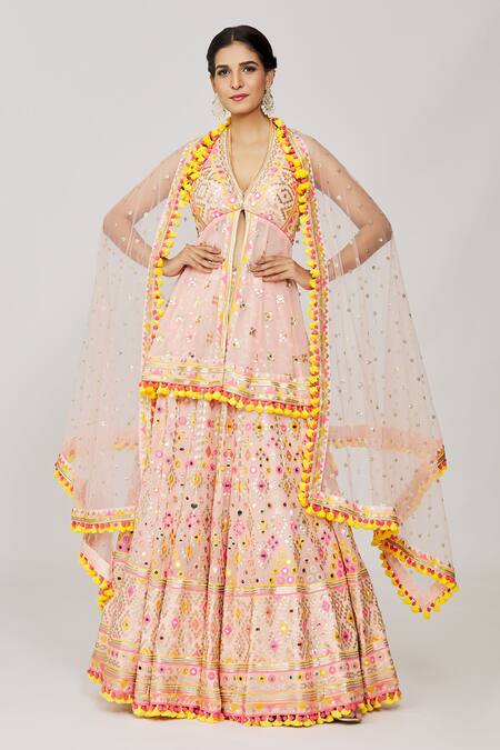 Pink Georgette, Net Sequins, Embroidery, Mirrors, Marya Blouse Lehenga Set