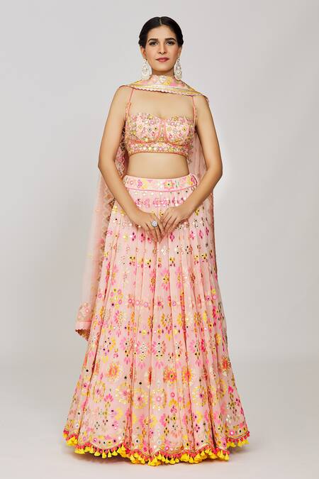 Pink Georgette, Viscose, Organza Mirrors, Prisha And Bridal Lehenga Set