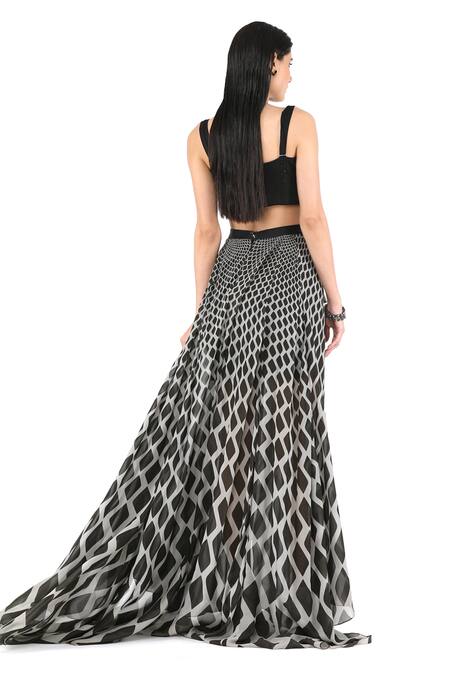 Black Chiffon Gradient Diamond Print Skirt