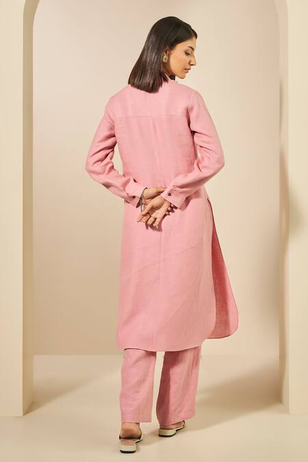 Pink Hemp Embroidery Quartz Straight Shirt Kurta With Pant