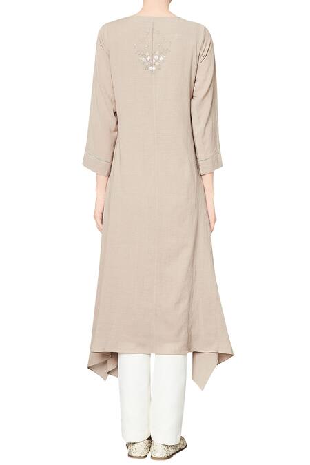 Buy_Anita Dongre_Grey Cotton Georgette Embroidered Ishira Tunic_at_Aza_Fashions