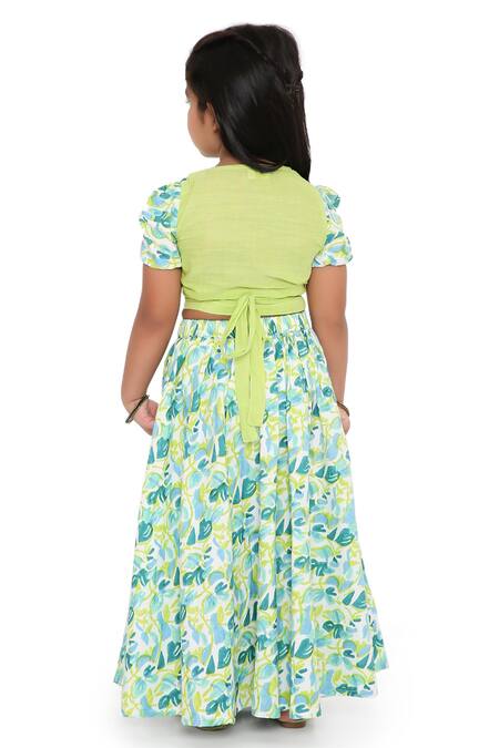Green lehenga with all-over printed motifs and side pockets. Comes with blouse.