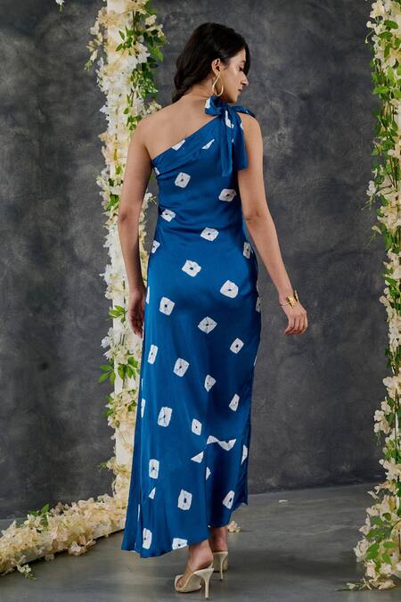 Blue Modal, Satin One Shoulder Bandhani Print Dress