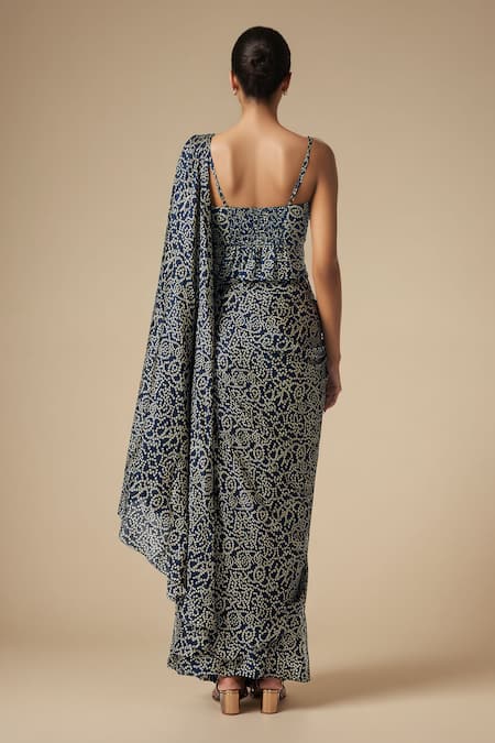 Blue Modal, Satin Bandhani Bloom Print Pre-draped Saree