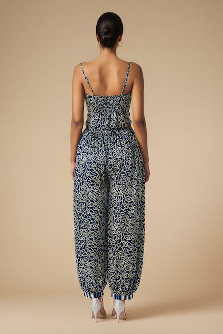 Blue salwar featuring bandhani print all over with leheriya detailed hem