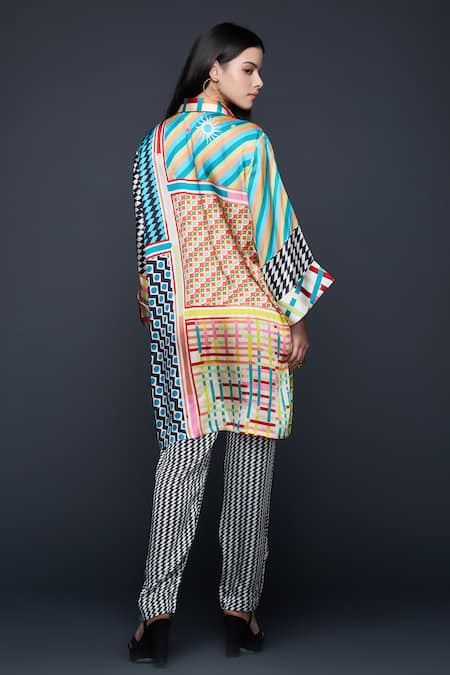 Multi Color Modal Collared Geometric Flora Print Shirt