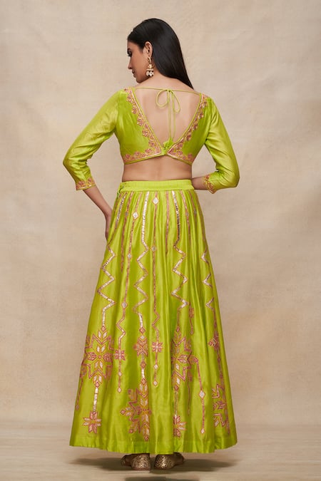 Green Chanderi Embroidery Gota Embellished 8 Kali Lehenga