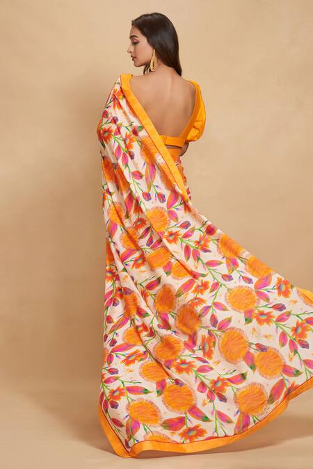 Orange Chanderi Digital Printed Kadam Saree