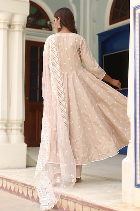Gulabo Jaipur_Grey , Organza, Pure Modal V Neck Embroidered Anarkali Set _Online_at_Aza_Fashions