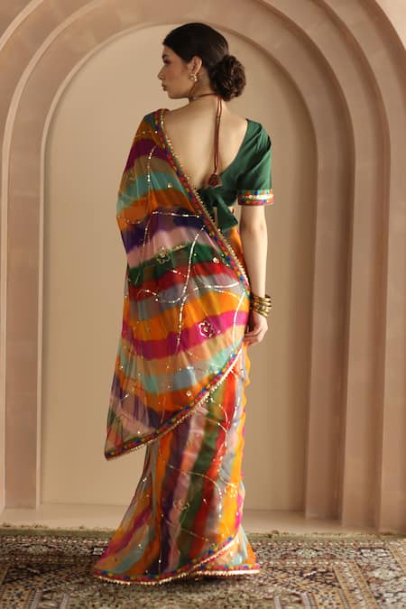 Buy_Gulabo Jaipur_Multi Color Georgette Sequins, Gulnar Leheriya Print Saree With Blouse _Online_at_Aza_Fashions