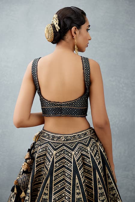 Black Leheriya, Polka Dots, Bhagalpuri Floral Gulghast Noor Lehenga Choli Set