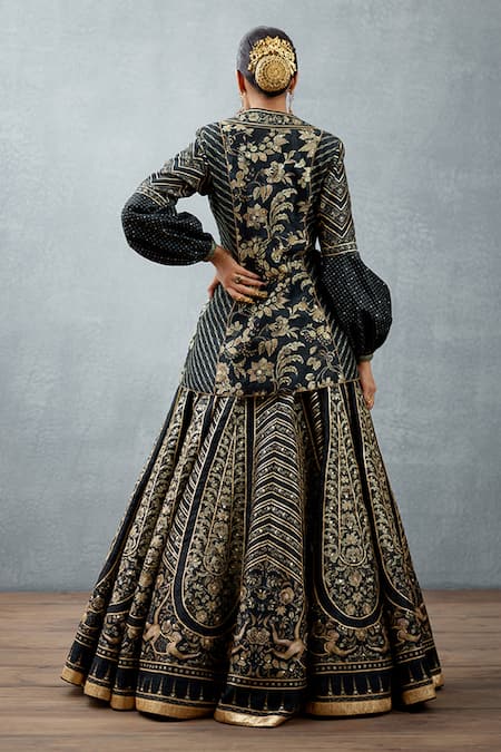 Black Heavy Raw Silk Bhagalpuri Floral Gulghast Parvaneh Lehenga Jacket Set