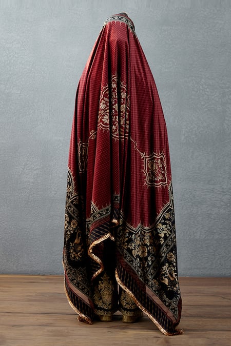 Black Slub Silk Digital Bhagalpuri Print Gulghast Zeenat Doshala