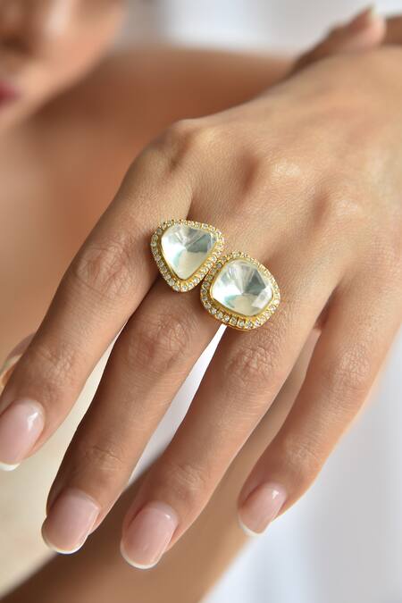 Buy_Gwacy_Gold Plated Polki Embellished Ring_at_Aza_Fashions
