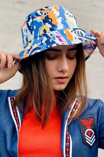 Blue Abstract Print Bucket Hat