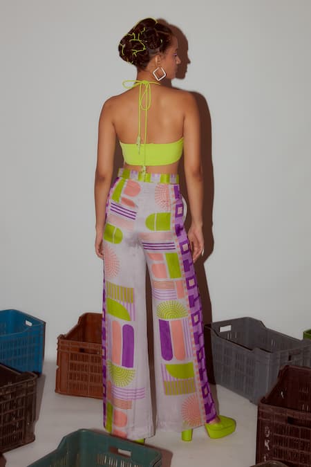 Lime green halter neck bralette featuring center ring detailing and tassel tie-ups