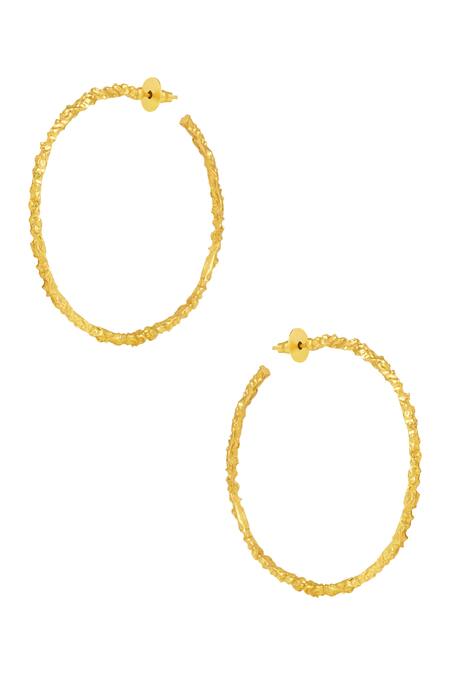 Buy_Flower Child By Shaheen Abbas_Gold Plated Hammered Hoops_at_Aza_Fashions