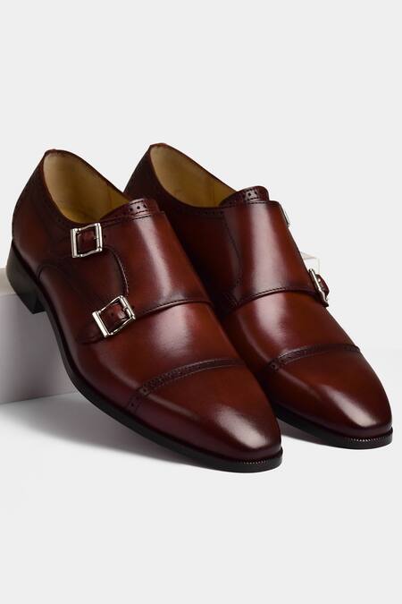Buy_Luxoro Formello_Brown Hand Dyed Brogue Double Monks_Online_at_Aza_Fashions