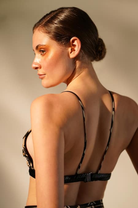 Black and white bralette featuring a plunge V-neck and sleeveless design