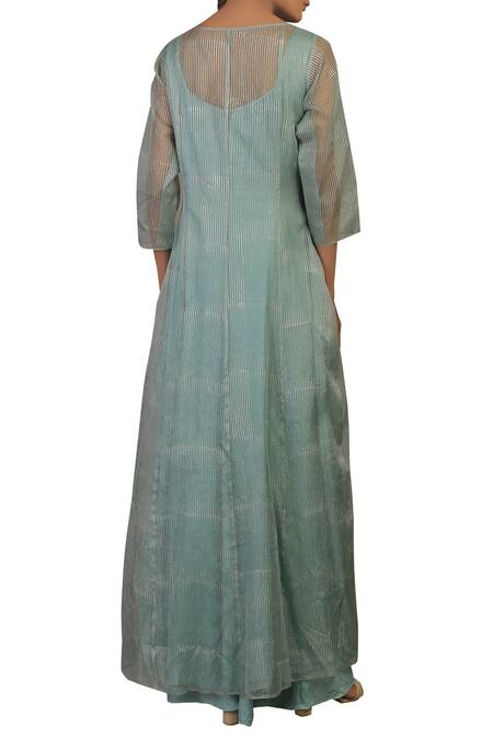 Buy_Priyam Narayan_Blue Embroidery Leaf Neck Hand Kurta With Kalidar Palazzos_at_Aza_Fashions