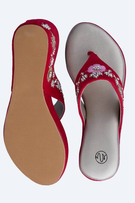 Cushioned sole for comfort, Pearl and resham embroidery details, Floral motifs on the straps