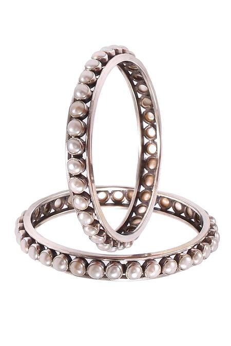 Noor_Silver Plated Pearl Handcrafted Beaded Bangles Set Of 2_Online_at_Aza_Fashions