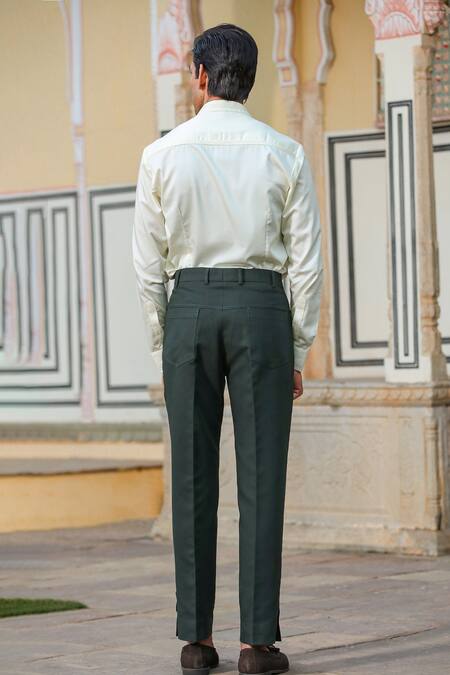 Buy_Raw & Rustic By Niti Bothra_Green Cotton Handcrafted Buttoned Hem Jeans