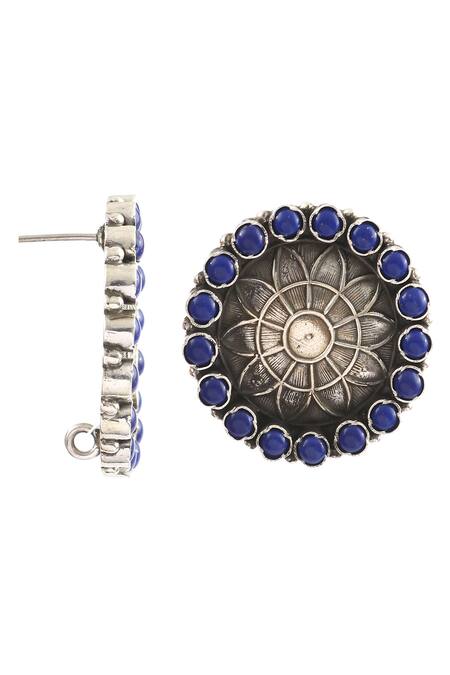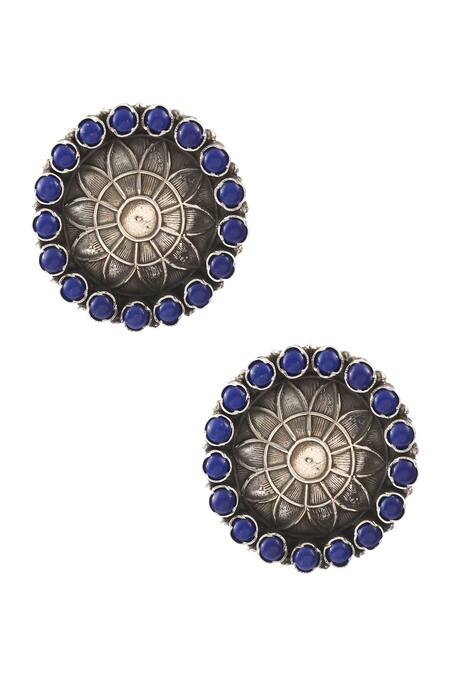 Silver Plated Stones, Studs Handcrafted Floral Carved