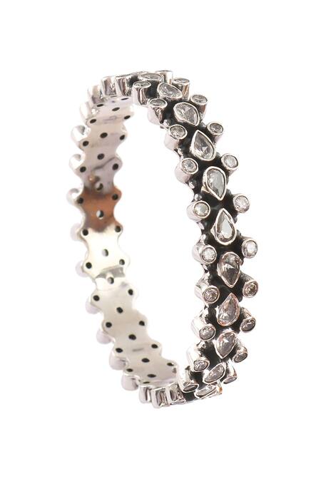 Silver toned bangle handcrafted & embellished in cubic zirconia.