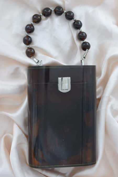 Cylindrical shape with pearl strap, Rust marble texture, Spot clean only care instructions