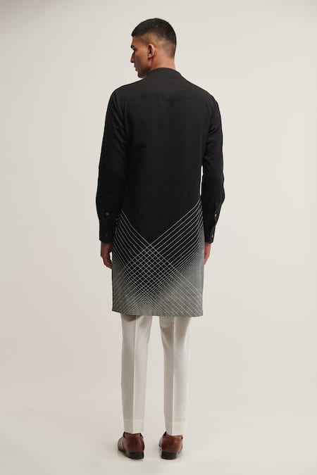 Buy_Dhruv Vaish_Black Handloom Cotton Geometric Printed Kurta Set _Online_at_Aza_Fashions