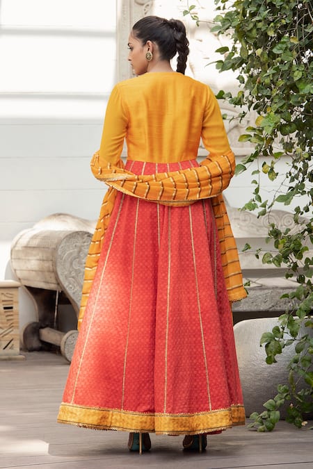 Buy_Nikasha_Yellow Raw Silk, Georgette, Handwoven Banarasi Cotton V Neck Anarkali Set _Online_at_Aza_Fashions