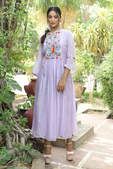 Buy_Desert Shine By Sulochana Jangir_Purple Handloom Cotton Tassels Split Embroidered Handwoven Chanderi Tunic_Online_at_Aza_Fashions
