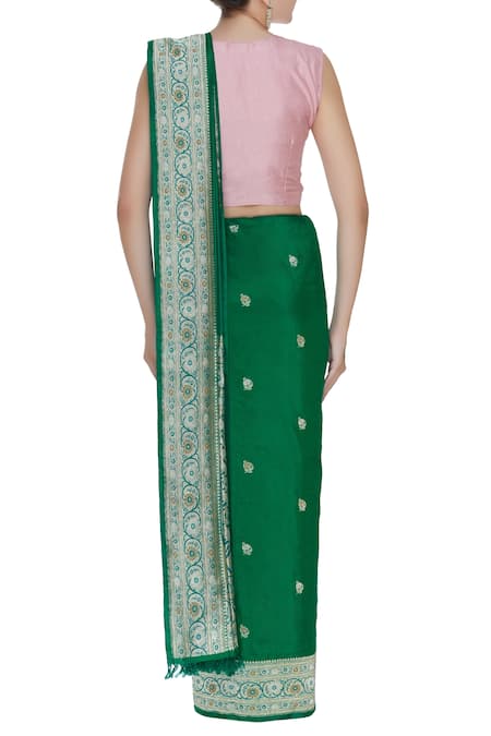 Buy_Ohfab_Green Handwoven Saree With Unstitched Blouse_Online_at_Aza_Fashions