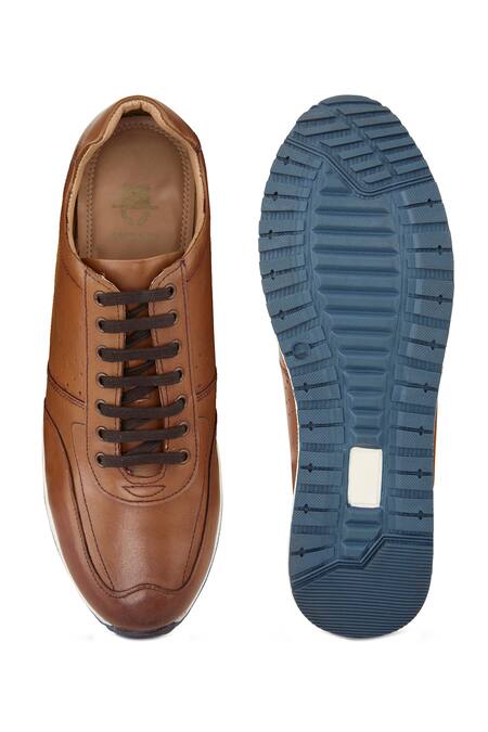 Brown genuine leather sneakers featuring a brogue pattern and lace tie-up detailing