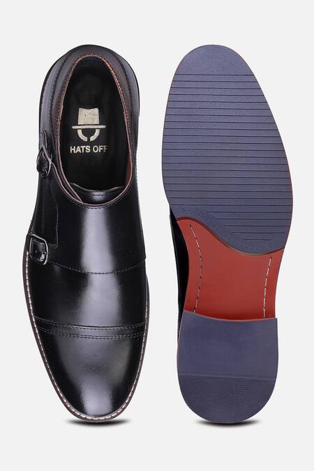 Black monk strap shoes crafted from genuine leather with a soft cushioned footpad