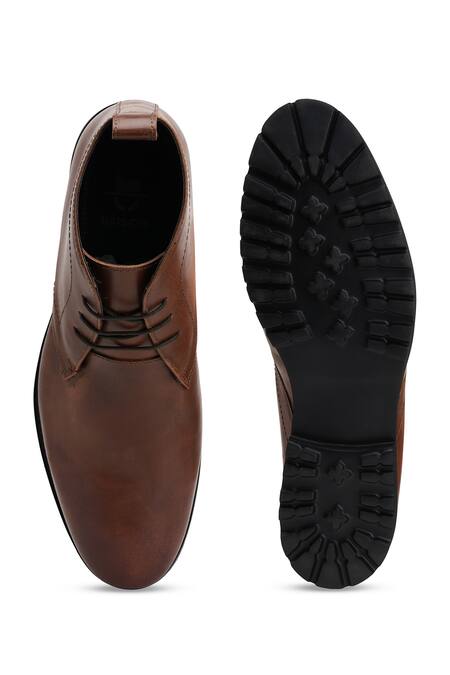 Brown genuine leather lace-up ankle boots featuring a matte finish